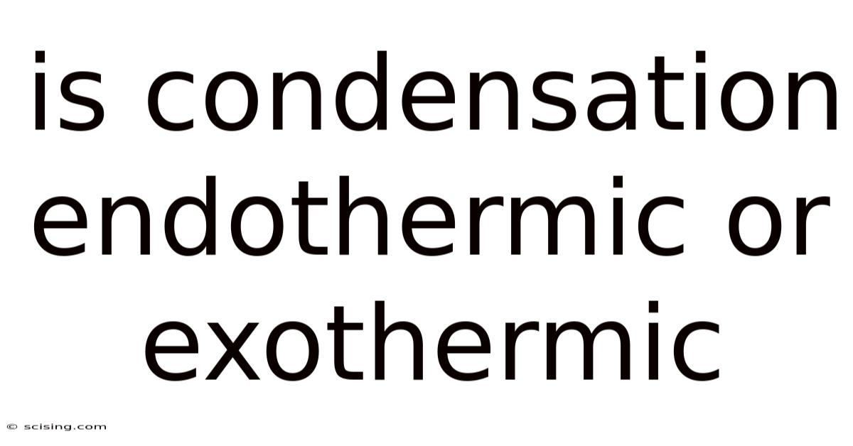 Condensation, the process by which a gas transforms into a liquid, is a fundamental concept in chemistry and physics. On top of that, this article will delve deep into the nature of condensation, explaining why it's an exothermic process and exploring the underlying principles of energy transfer involved in phase changes. Think about it: understanding whether it's an endothermic or exothermic process is crucial for comprehending various natural phenomena and technological applications, from cloud formation to industrial cooling systems. We'll also cover some related concepts and frequently asked questions to provide a comprehensive understanding.